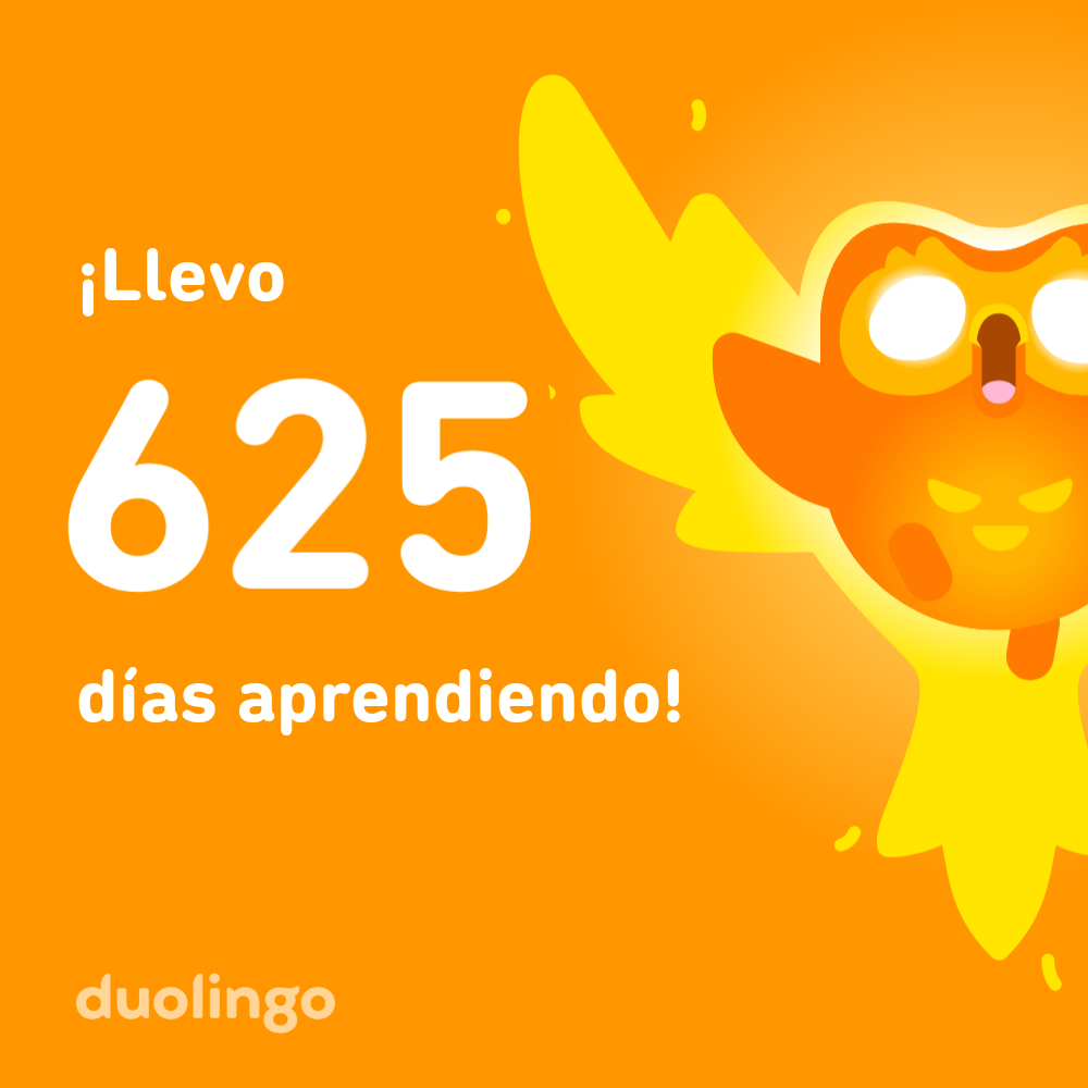 Empezando el año con 625 días de racha en Duolingo